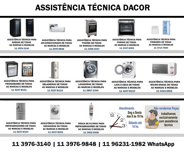 Assistência técnica eletrodomésticos Dacor em São Paulo, grande São Paulo e grande ABCD.